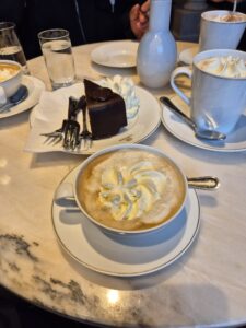 잠시 산책후에는 자허카페(Sacher Café)로 향했답니다. 웨이팅이 생각보다 길었지만 내부가 정말 고급스러웠어요. 저는 자허 멜란(Sacher Melange)랑 오리지널 자허 토르테(Original Sacher Torte)를 시켰어요. 오리지널 자허 토르테는 초코케이크인데 솔직히 가격 대비 별로였어요 😅 근데 자허 멜란지는 진짜 최고였어요! 제가 마셔본 에스프레소중에 휘핑크림과 제일 잘 어울렸어요. 크림도 직접 만든건지 달지 않고 부드러웠어요.