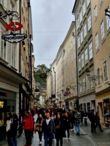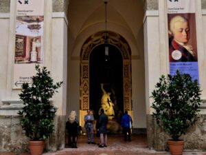 그 후 게트라이데 거리 (Getreidegasse)에서 중세풍 간판들이 줄지어 있는 모습을 구경하고. 이 거리의 9번지 바로 모차르트 생가로 들어갔어요. 실제로 모차르트가 태어난 곳이고, 안에는 그가 어릴 때 사용했던 바이올린 그리고 제가 좋아하는 오페라 마술피리(Die Zauberflöte)의 무대, 무대의상까지 전시되어 있었어요.