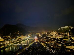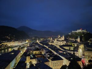 저녁 후에는 현대미술(Museum der Moderne)으로 올라가서 잘츠부르크 야경 감상했어요. 저녁에 위에서 내려다본 도시 불빛이 너무 낭만적이였어요. 여기도 잘츠부르크 카드로 올 수 있답니다.