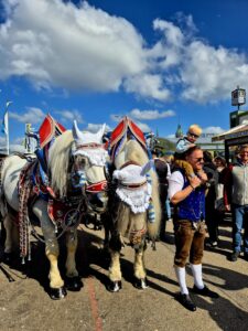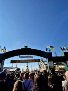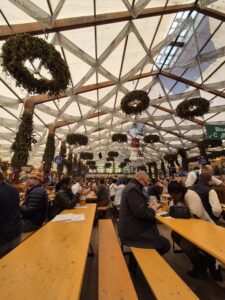 오전에 거의 옥토버페스트 문 열자마자 갔는데 사람들이 정말 많더라구요. 들어갈 때 작은 핸드백 같은 가방 말고는 무조건 입구 옆 보관에서 맡겨야 해요! 하루 종일 맡아준느데 5유로 받네요. 들어가니 엄청 크고, 길거리 음식도 많고 볼거리도 많아요. 유명 맥주 회사인 파울라너(Paulaner), 호프브로이하우스(Hofbräuhaus) 같은 곳에 들어가면 앉아서 맥주를 마실 수 있는데, 와.. 맥주가 일단 1L 부터 시작하네요. 근데 맥주 완전 꿀맛!!