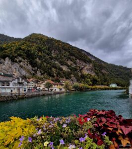 인터라켄을 지나가는 아레강(Aare, 지난번 포스트 아레흐슐르흐Aareschlucht를 만든 그 강이에요)이 에메랄드빛으로 얼마나 예쁘던지! 그리고 중간중간 가게들도 너무 아름답고, 여기는 정말 신기하게 건물마다 꽃으로 아름답게 장식해놨더라구요, 보는 내내 완전 힐링이었어요 🌸