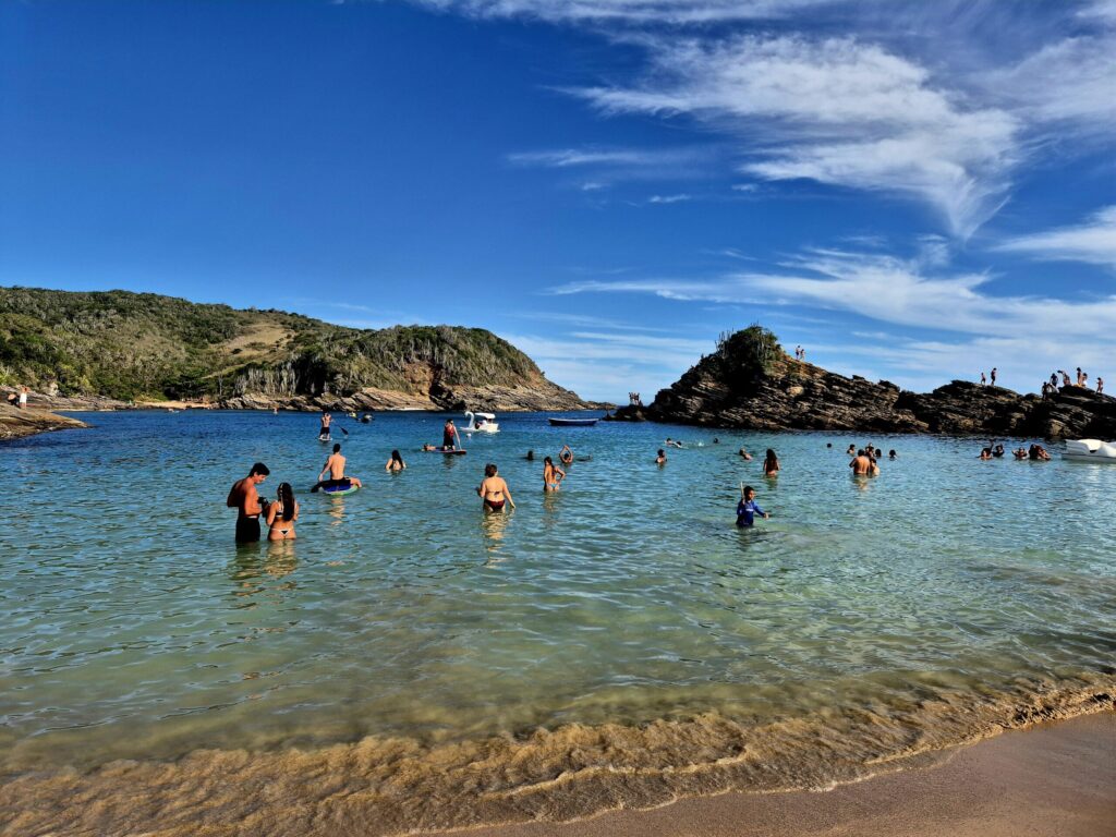 친구들과 친구네 가족들과 브라질 리우데자네이루 주에서 유명한 고급 해변 휴양지인 부지오스(Buzios, Brazil)를 갔어요. 17개 해변 중에 3개 해변을 방문했는데, 모든 해변이 그냥 너무 좋았어요. 글 쓰며 사진 보는데 아직도 내가 여기서 시간을 보냈다는 게 꿈만 같네요 🤩 첫 번째로 방문한 해변은 페하두리냐 비치(Ferradurinha Beach)에요. 작은 해변이고 산과 절벽으로 둘러싸여 있어 매우 잔잔하답니다. 그리고 물 색이
